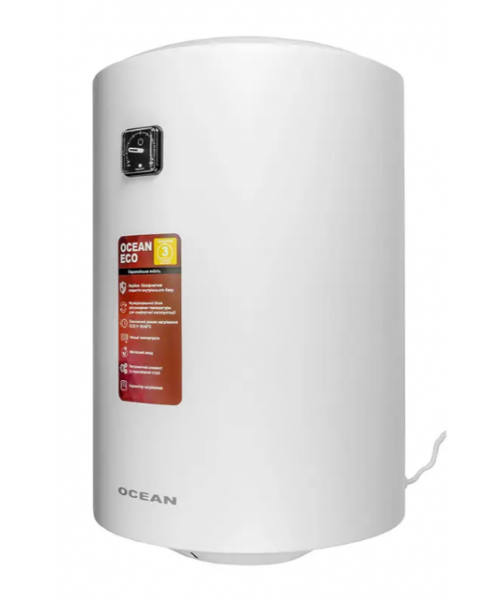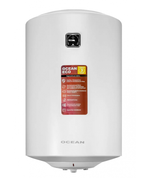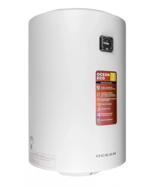 OCEAN ECO – современный вертикальный электрический водонагреватель с эмалированным баком и мокрым ТЭНом. Модель сочетает экономичность, безопасность и долговечность.