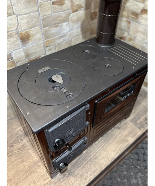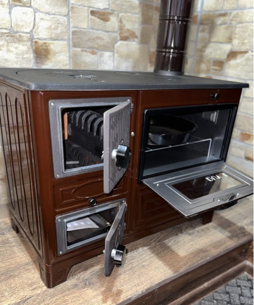 Duval EK-4010 — дров’яна піч-кухня формату «євро буржуйка» з духовкою та трьома конфорками різної потужності. Модель отримала дверцята топки зі склом і системою чисте скло, повністю чавунну футеровку та зручну висоту робочої поверхні — 60 см. Піч зберігає всі кухонні функції, при цьому має бюджетну ціну та темно-коричневий колір корпусу. Завдяки вдалому співвідношенню ціна-якість аналогів у цьому класі фактично не існує.