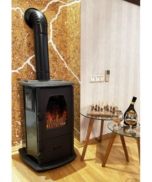 Має власний захисний піддон для безпечної установки, повністю чавунний внутрішній корпус із шамотним футеруванням та працює на будь-яких видах твердого палива, включаючи вугілля. Забезпечує повну автономність — без газу та електрики. Догляд спрощений завдяки двом дверцятам і рухомому колоснику. Доступна також у темно-червоному варіанті — Duval EM-5115.