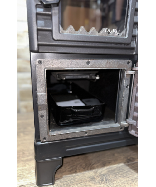 Duval EK-5237 BL — современная дровяная печь-кухня формата «евро-буржуйка» с духовкой и двумя конфорками. Модель сочетает компактность, функциональность и стильный черный дизайн. Оснащена каминным стеклом SCHOTT (Германия), которое отличается высокой термостойкостью и долговечностью.