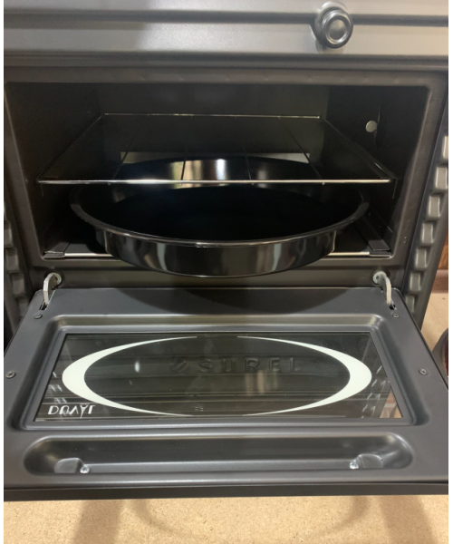 Печь имеет удобную духовку с круглым листом в комплекте, две конфорки разной мощности, а также загрузку топлива сверху и спереди. Чугунные дверцы топки и зольника обеспечивают надежность и долгий срок службы, а эмалированный корпус легко очищается и сохраняет эстетичный внешний вид.